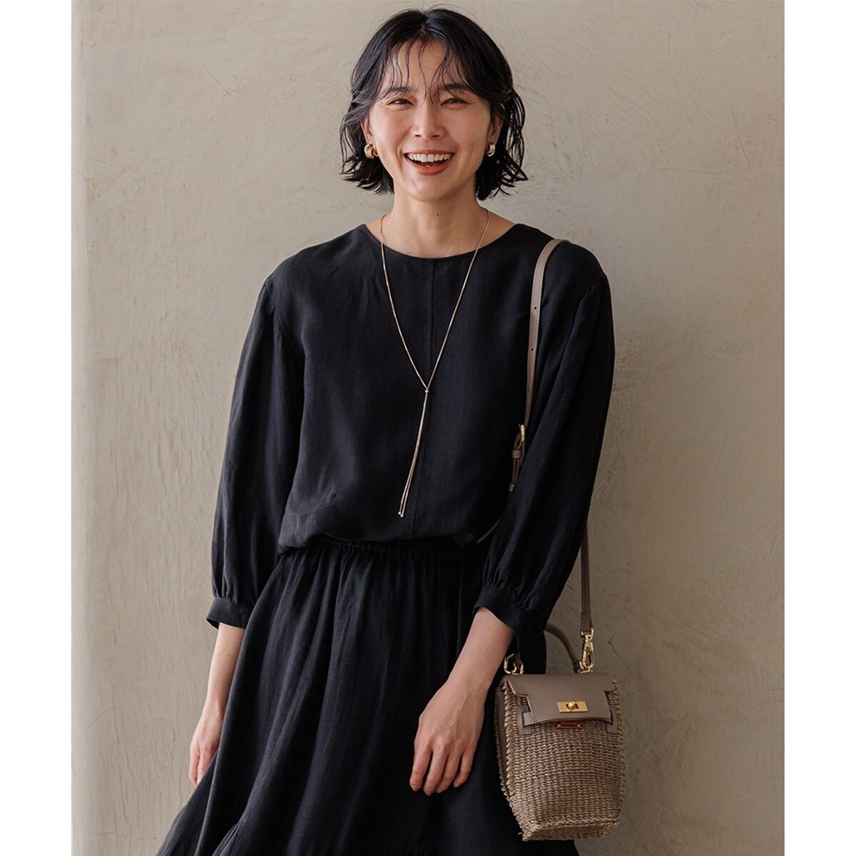 幅広のサッシュベルトでつくるウエストマークが今年らしいデザインブラウス