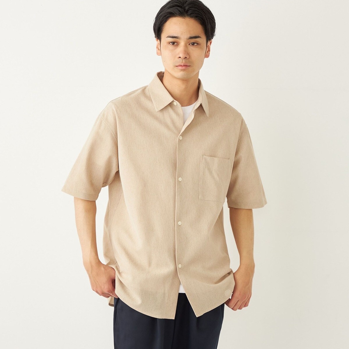清涼感のある手触りとシアー感が特徴のオリジナルのジャージー素材を使用した半袖シャツ。