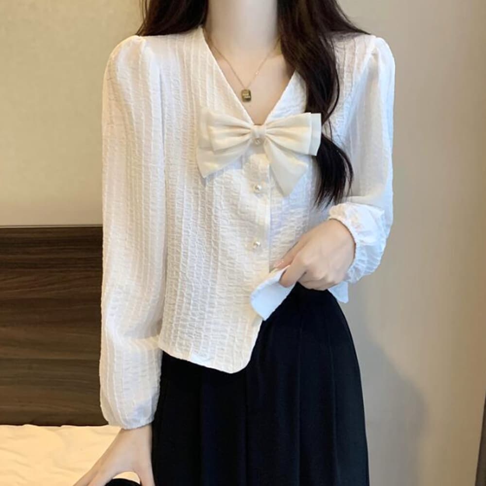 新品 シフォンブラウス リボンタイブラウス 長袖 オフィス 卒業式 入学式