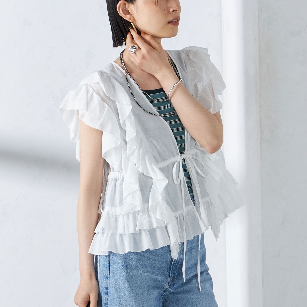 アーバンリサーチ サニーレーベル エアリーコットンフリルフレンチシャツブラウス