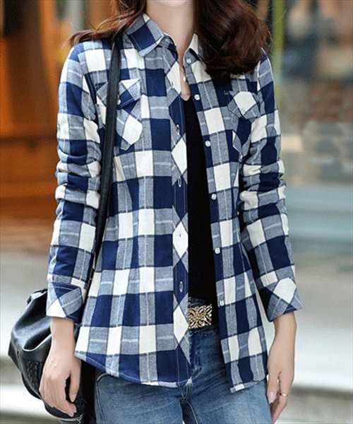 ロングフランネル チェック 長袖シャツ チェック コート使用