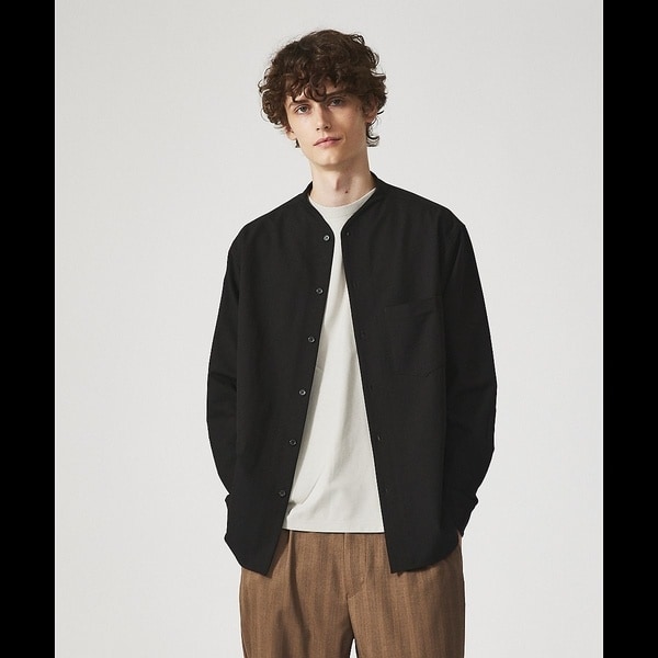 【変形襟】シャンブレーツイル カラーレス シャツ / バンドカラーシャツ