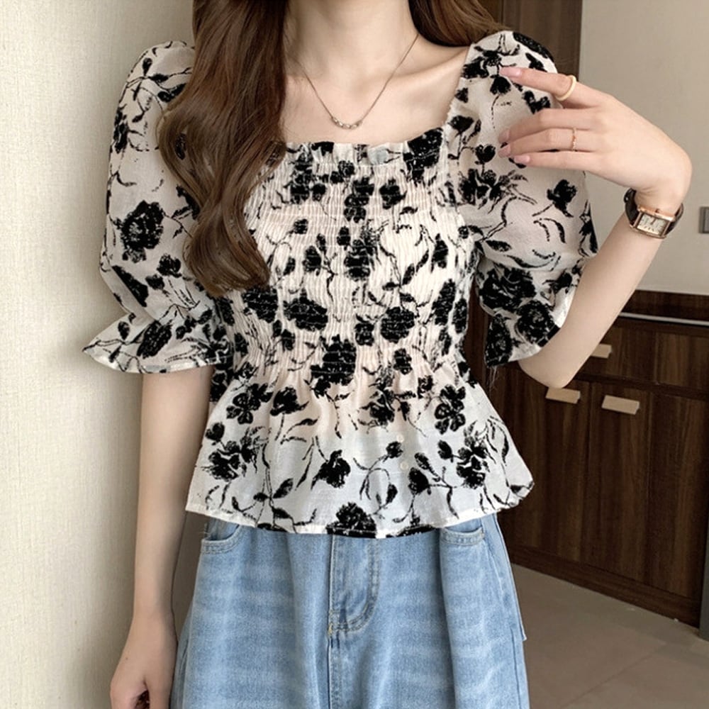 トップス 花柄 / 半袖 / カジュアル