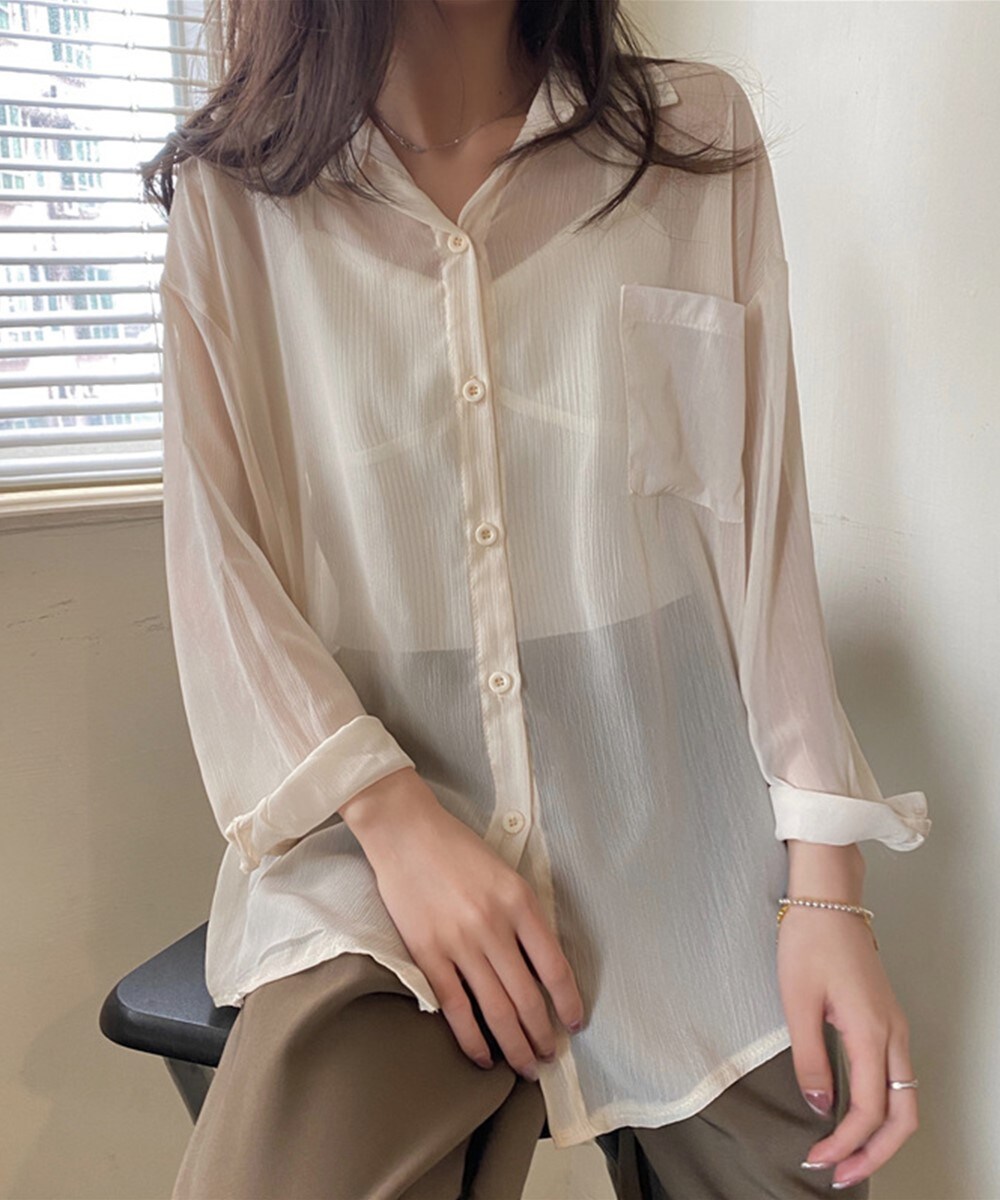 【Jasmine】シアー素材涼しげシースルー長袖シャツ