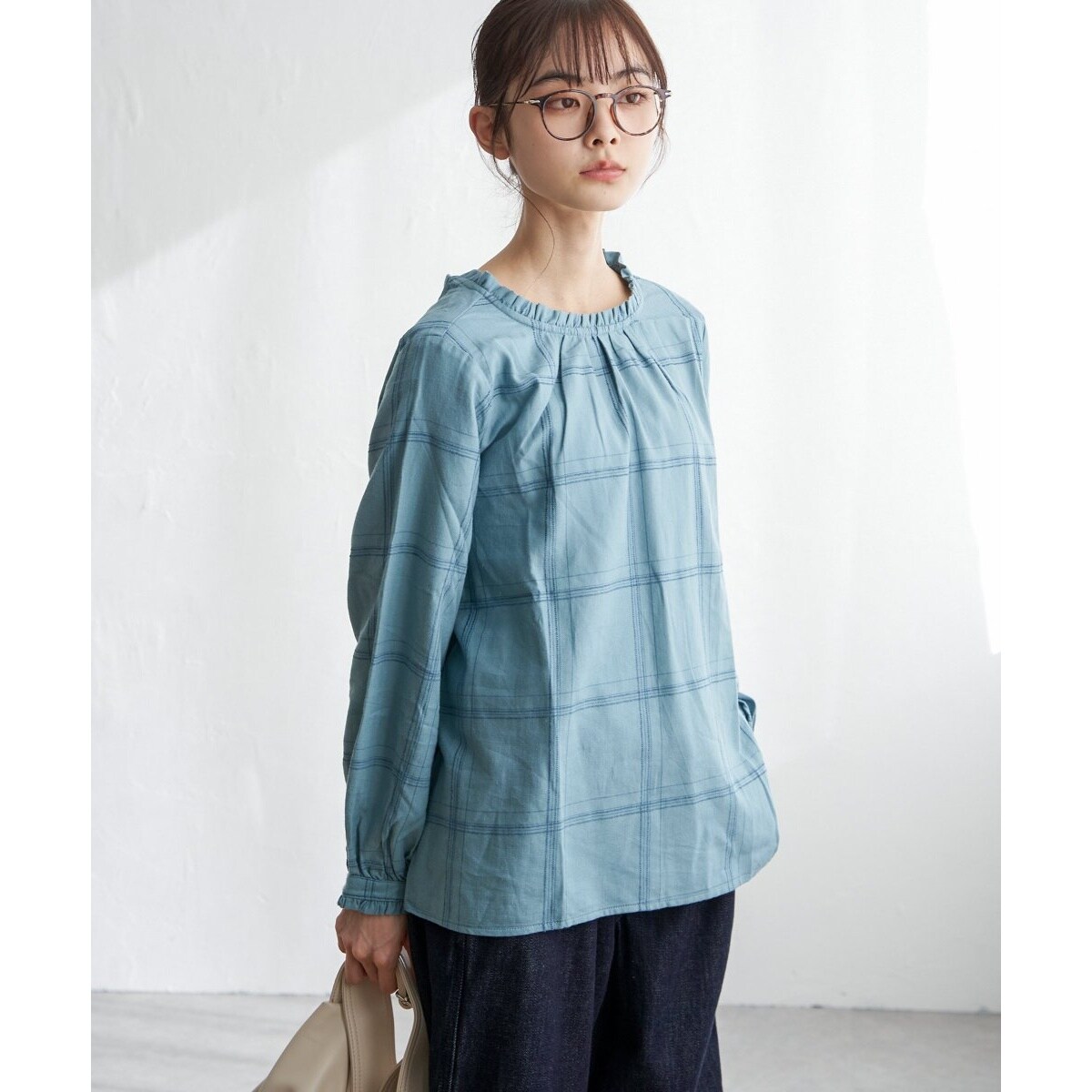 フリル襟デニムブラウス