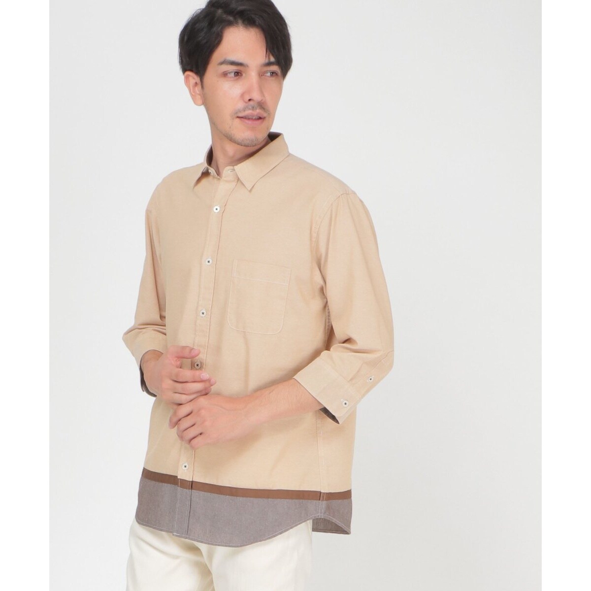 7分袖オックス裾切り替えシャツ