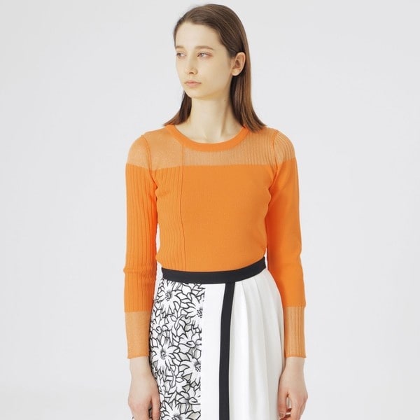 部分的に透ける編地を組み合せたシアーコンビニット