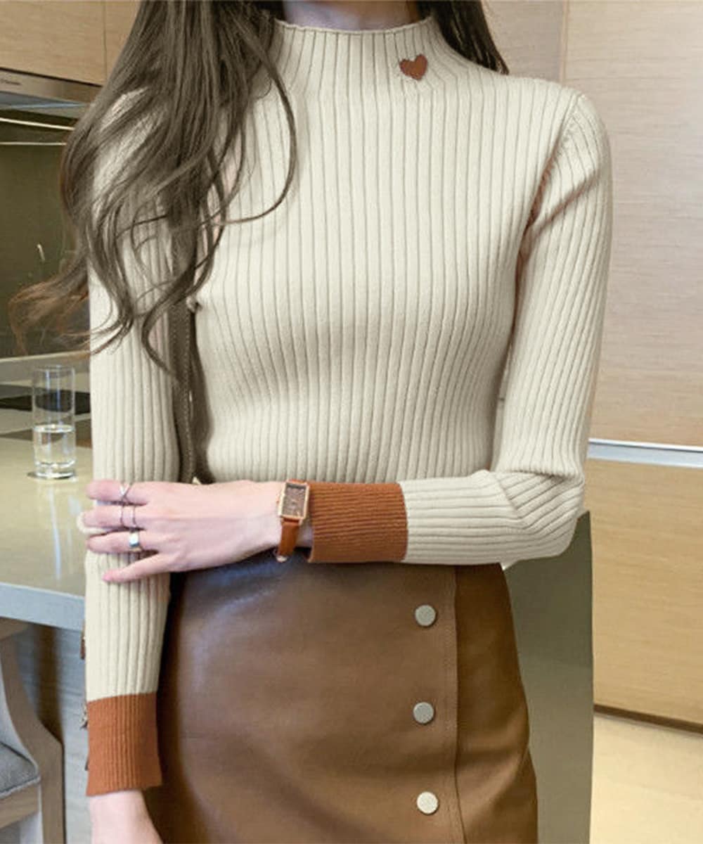 首元にハートが入ったリブニットです。
