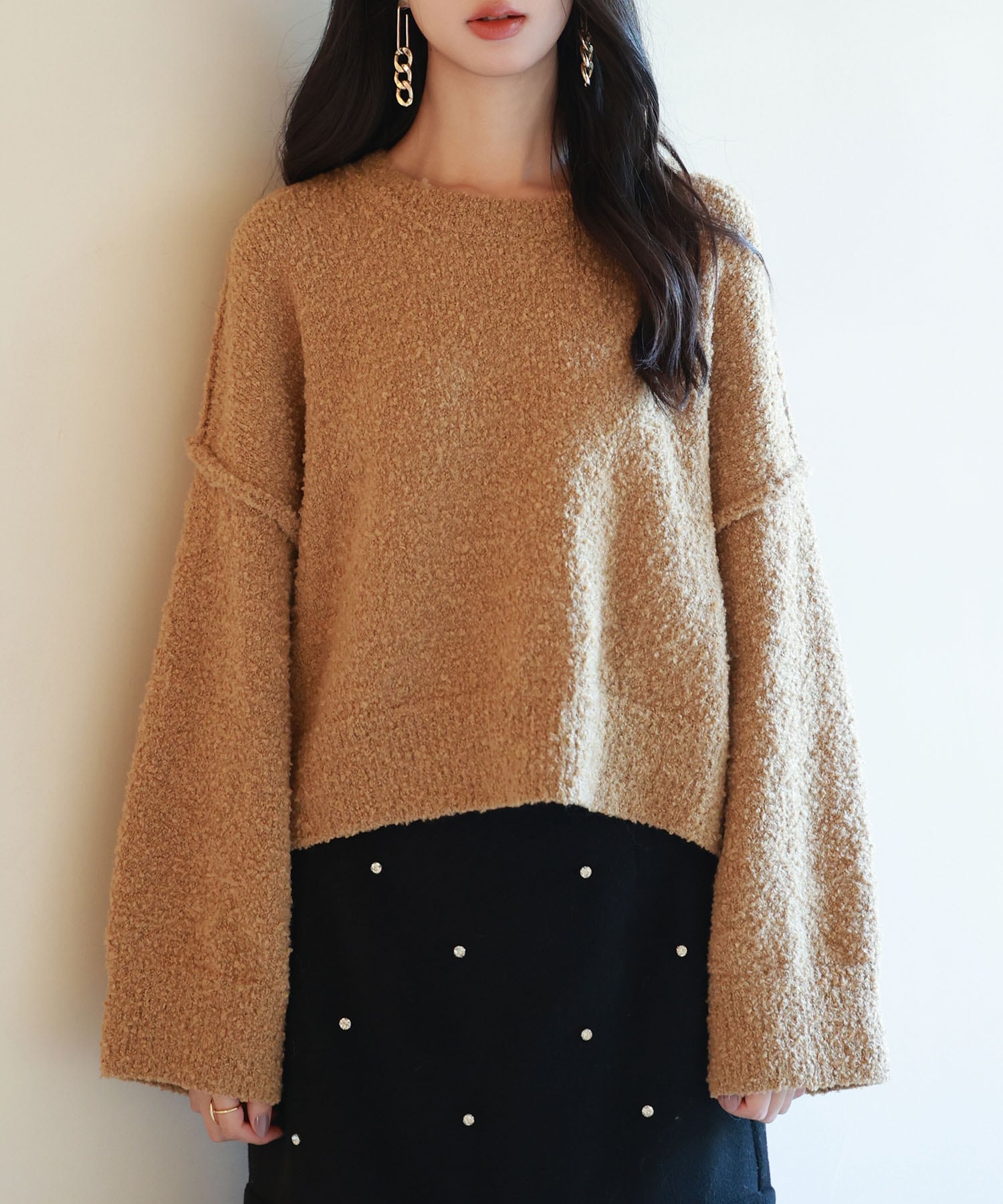 ドロップショルダーでルーズ感が映える暖かい生地のニットプルオーバー。