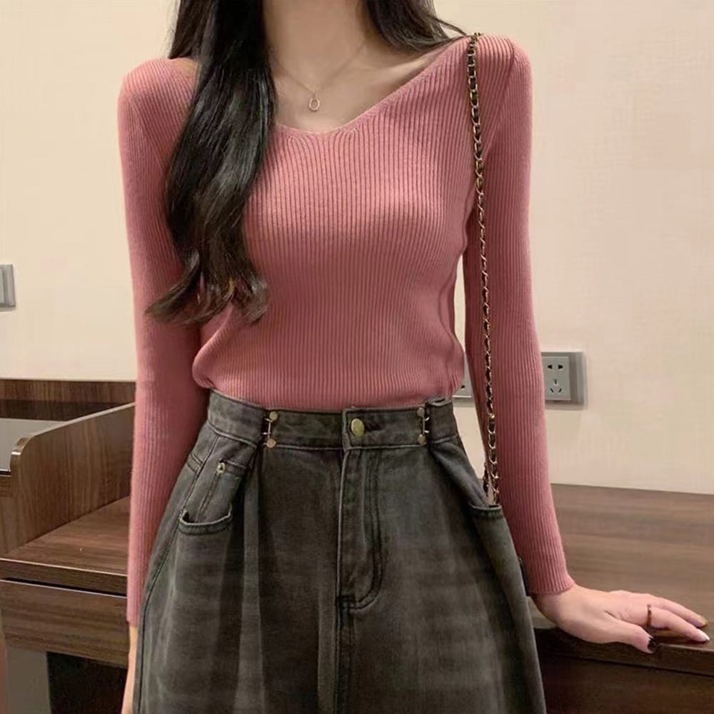 程よい深さのVネックデザイン、デコルテ周りをスッキリ見せ、上品で清楚な印象を与えてくれる