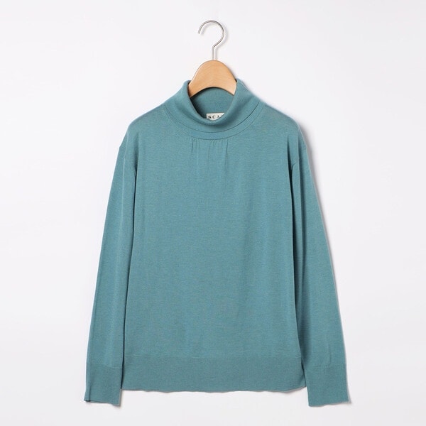シンプルなデザインがコーディネートのベーシックとして活躍するニットトップス。毛とシルクのブレンド素材は滑らかな肌触りで快適な着心地。折り返しのハイネックデザイン、首もとにはさりげなくギャザーをほどこしワンポイントに。ゆったりとしたドロップショルダーで仕上げています。