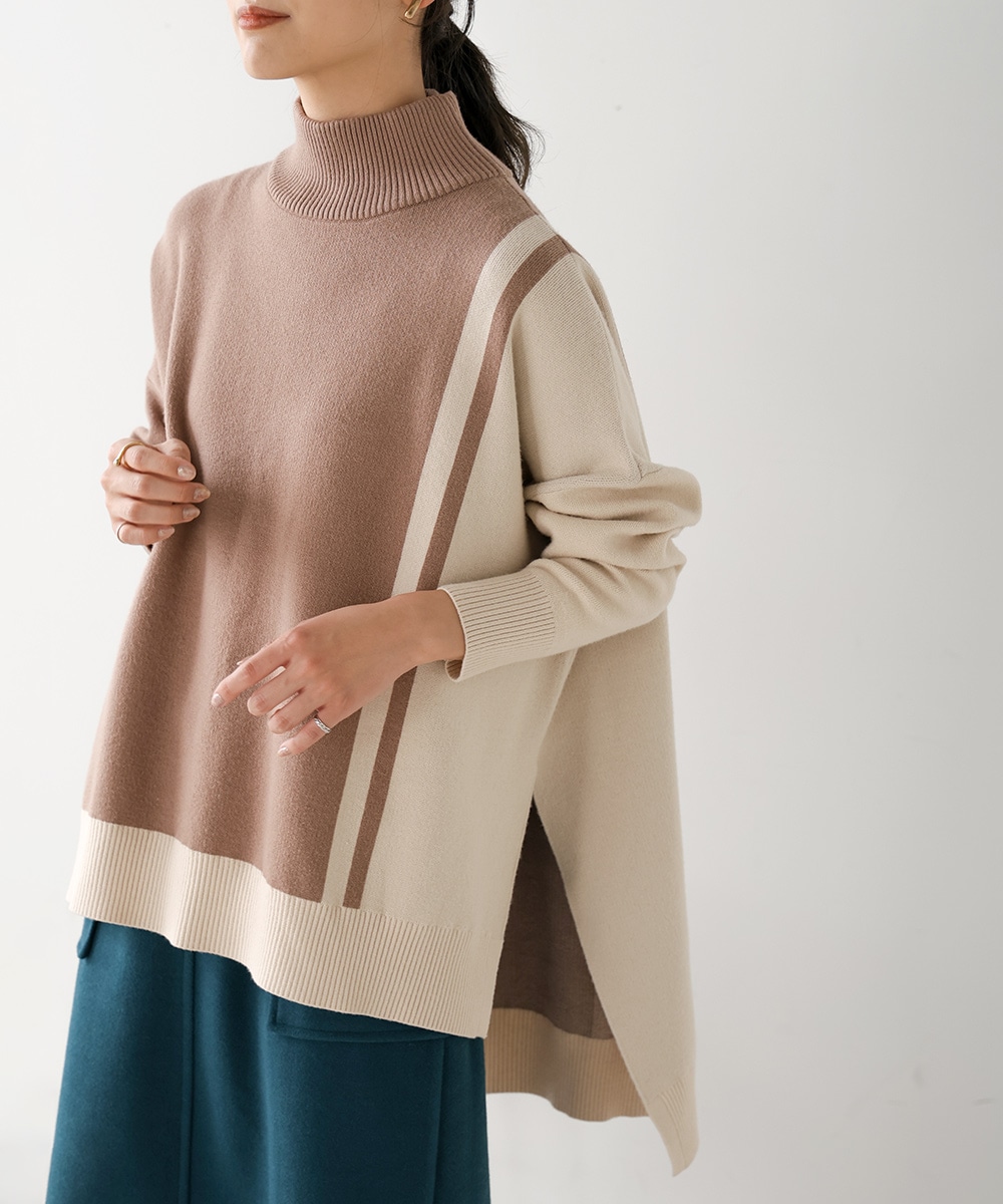 もち軽配色ニットチュニック