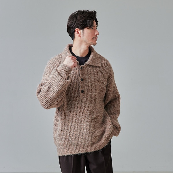 トレンド感のある深めの前開きポロデザイン。身幅と腕周りにたっぷりとゆとりをもたせたオーバーサイズなので、抜け感のある見え方に。ふわふわなボディに、前立てと襟はあえて起毛をかけずスッキリと仕上げたメリハリ感のある1着です。