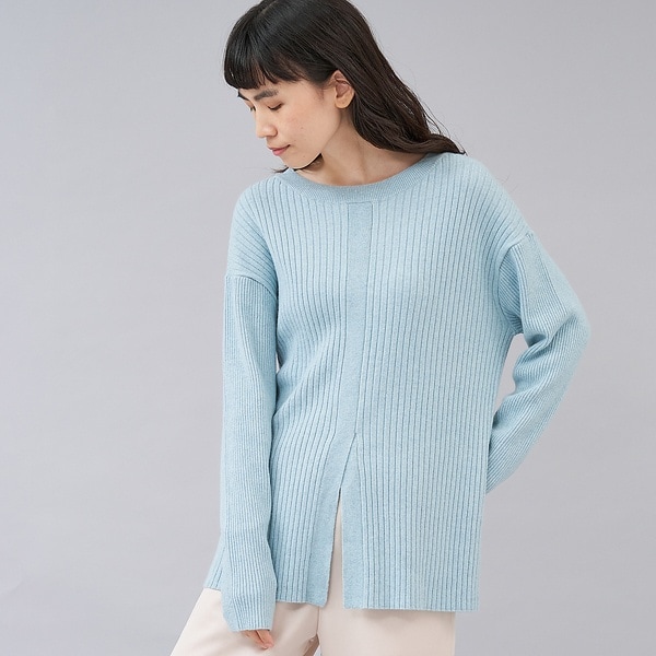 獣毛の暖かさと、レーヨンの柔らかさをミックスさせた人気の混合素材でつくられた、リブプルオーバー。