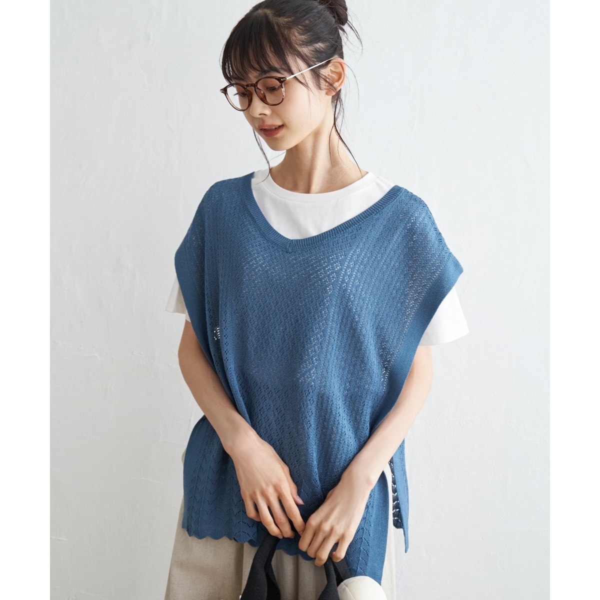 Tシャツやワンピとのレイヤードに活躍する、残暑でも着られるニットベスト。