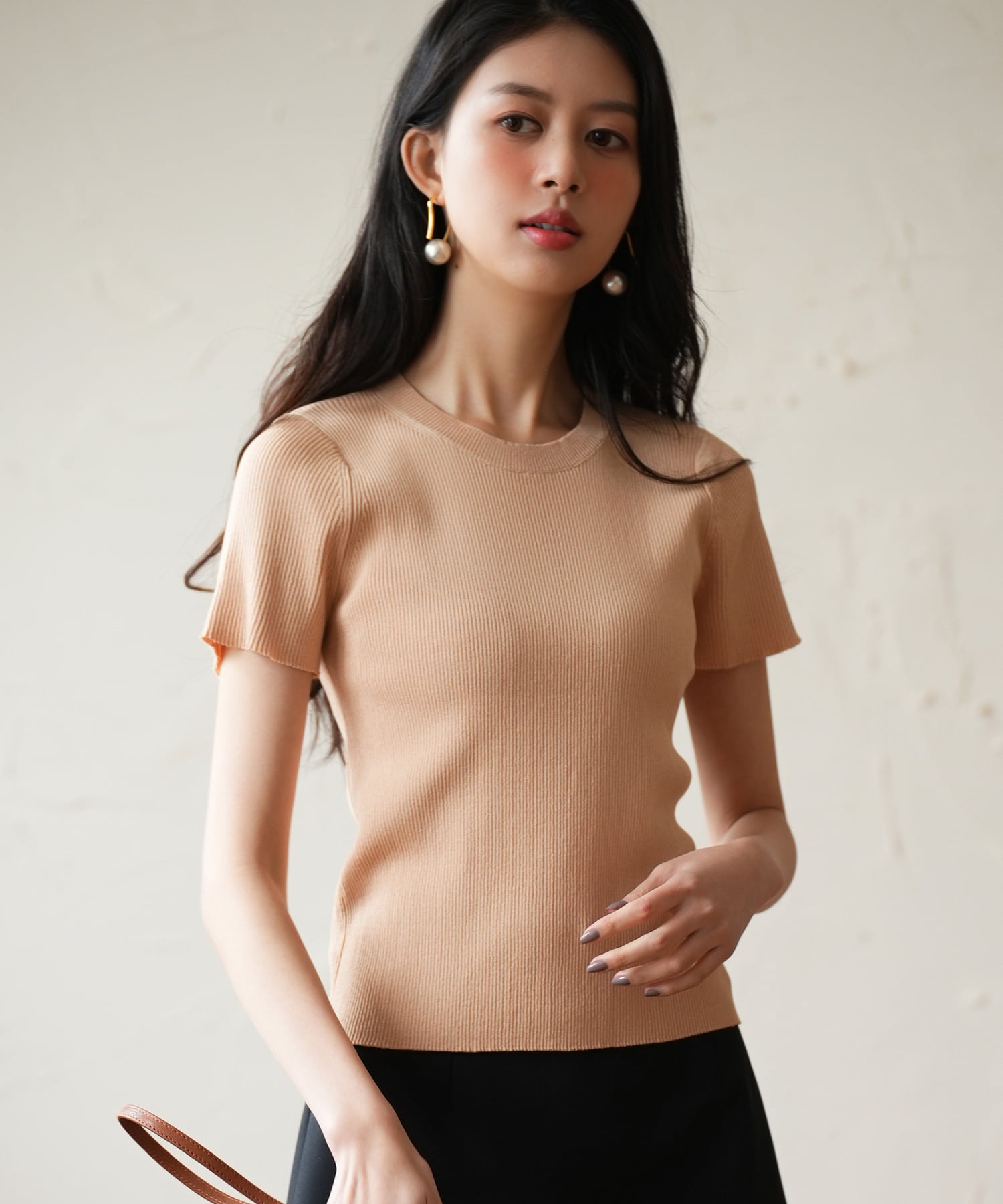 ぴったりサイズながらも細リブが伸縮性抜群で着心地快適。ボディラインを拾う大人っぽいシルエットです。