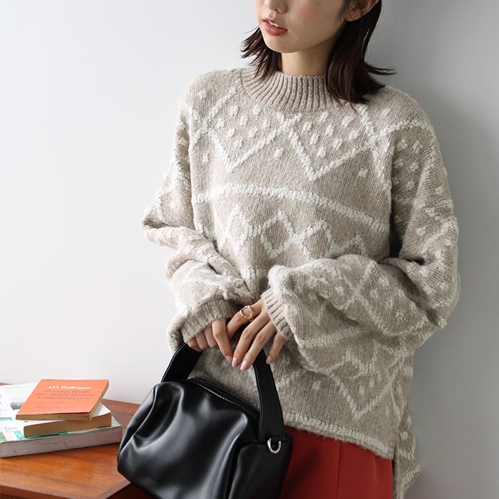 レトロジャガードストライプ柄 ビッグシルエット 3Dニットプルオーバー