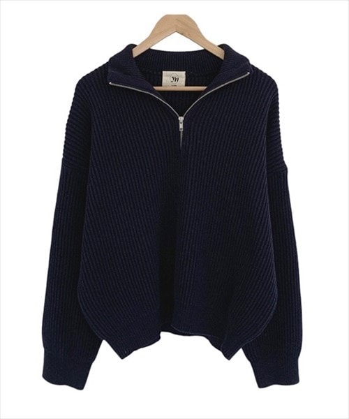TURTLE DOVE【L】リブ編みハーフジップ五分袖ニット 2Way