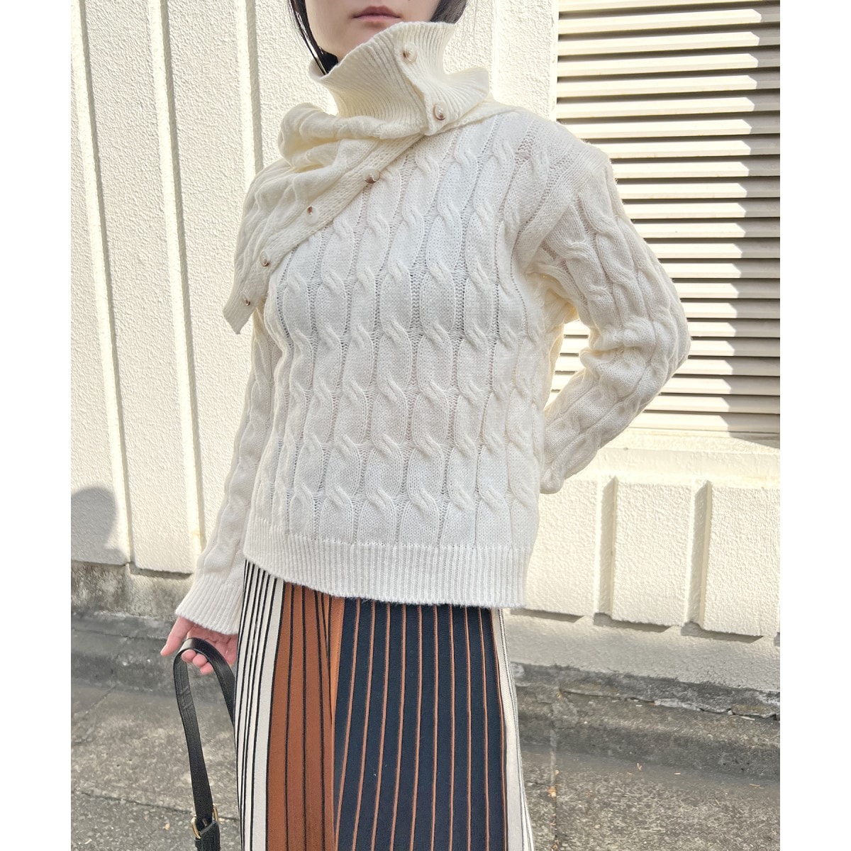 【3サイズ展開】ジップ付きケーブルニットプルオーバー