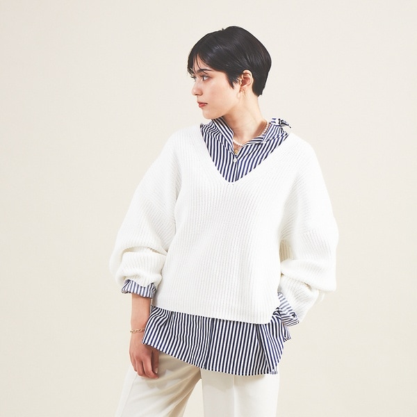 片畦クルーネックプルオーバーニット31-01-KN-008-23-2