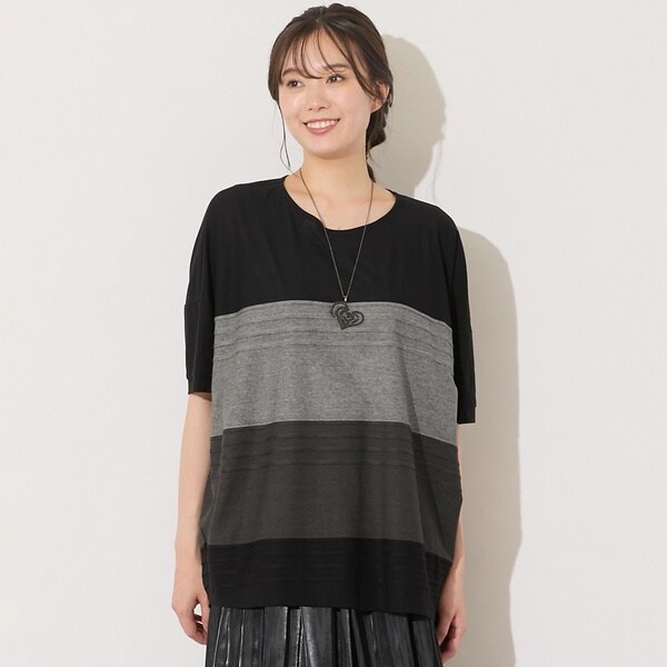 ■ピンタックが高見えする、パネルボーダー柄コクーンシルエットカットソー■