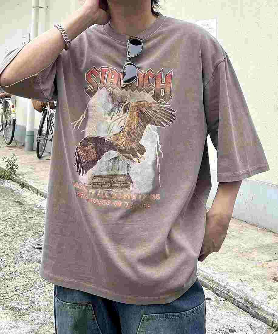 洗練されたピグメント加工やかすれたプリントを施すことで、本格的な古着のような風合いを再現。