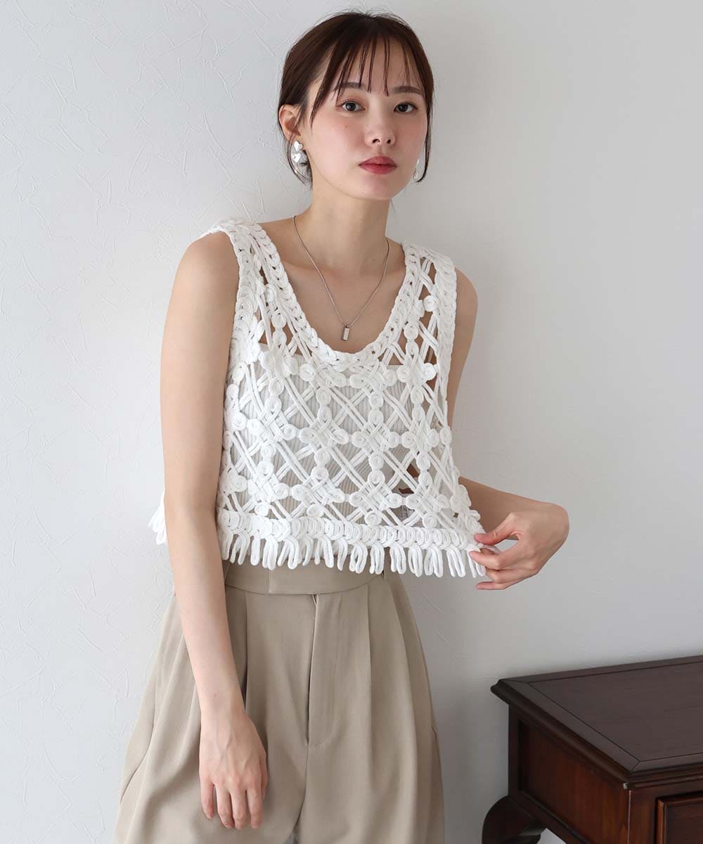 クロシェレースが目を惹くショートベスト