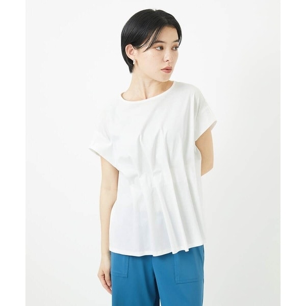 ウエストのタックが自然とスタイルアップを叶えてくれる一枚。シンプルなボトムを合わせるだけで、旬の大人カジュアルが完成します。機能性もスタイルアップも同時に叶えてくれるのでこの夏、ワードローブに加えたくなる一着です。