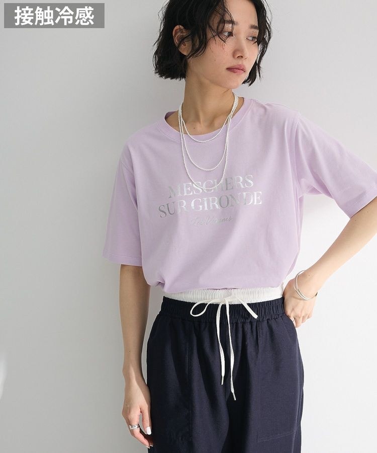 煌めく箔プリントで表現したグラフィックロゴがスタイリッシュなTシャツ。接触冷感のあるテキスタイルで暑いシーズンも快適にご着用いただけます。洗濯してもよれにくいのも魅力のポイント。ゆったりとしたサイズ感のベーシックシルエットでトレンドライクに着こなせるおすすめアイテムです。透け感[ややあり]