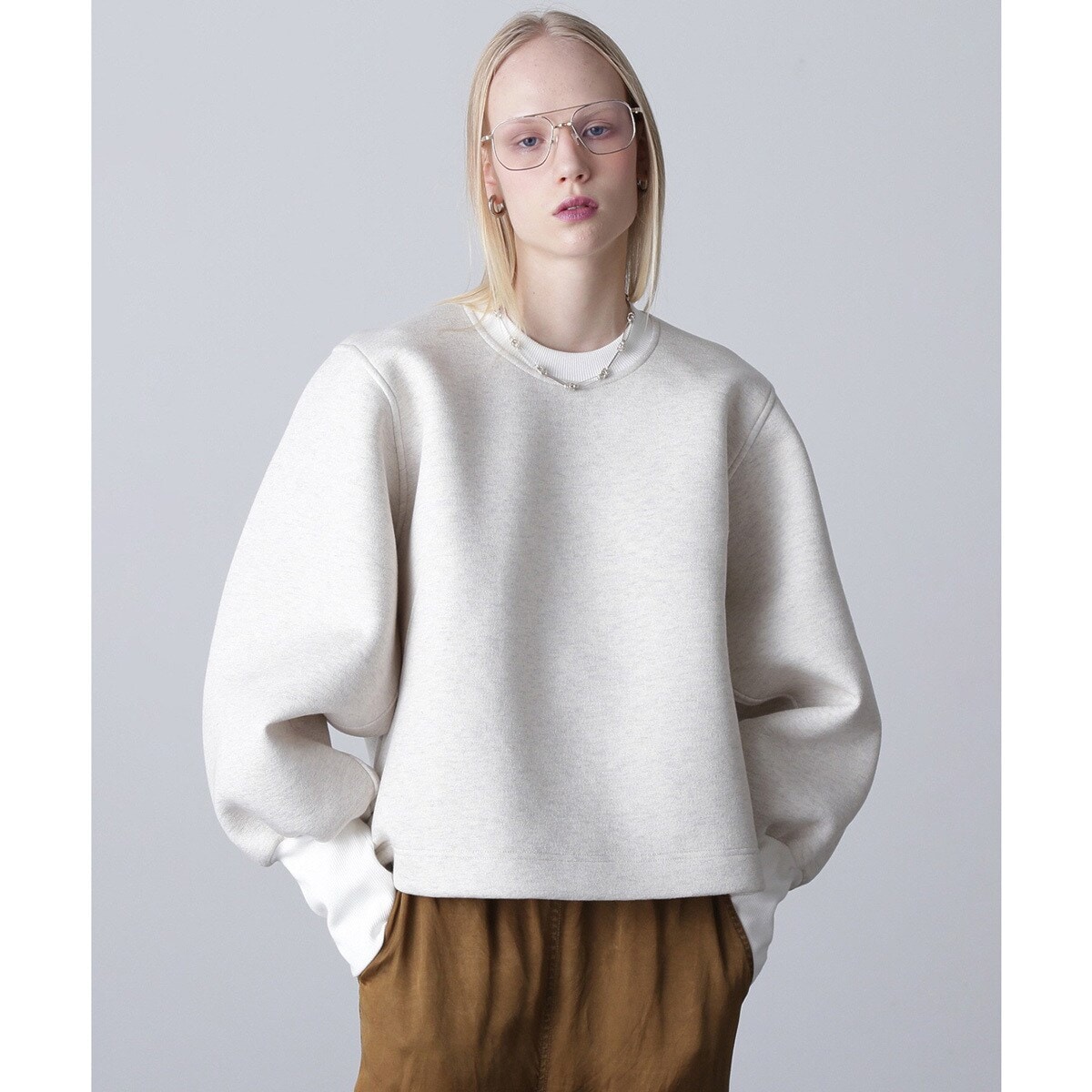 (mici)VOLUME SLEEVE TRICOT CHIFFON TOP