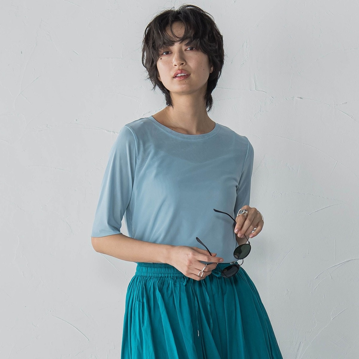 《アンサンブル対応》《手洗い可能》マルチファンクション5分袖プルオーバー