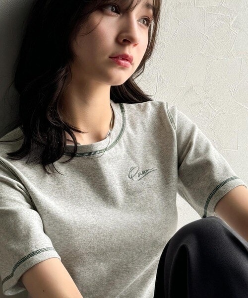 1枚で今っぽデザイン♪PAEAN刺繍配色ステッチチビTシャツ(半袖)