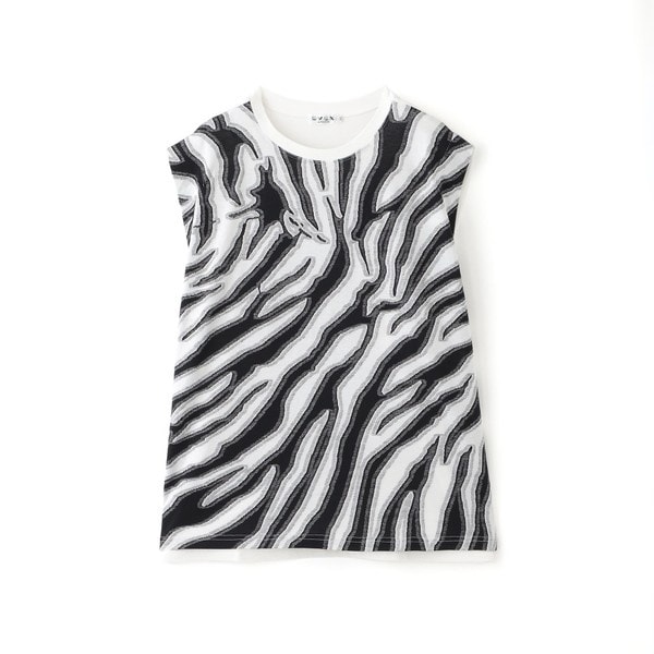 【L】【カタログ掲載品】【ウォッシャブル】アニマルカットジャカードノースリーブカットソー
