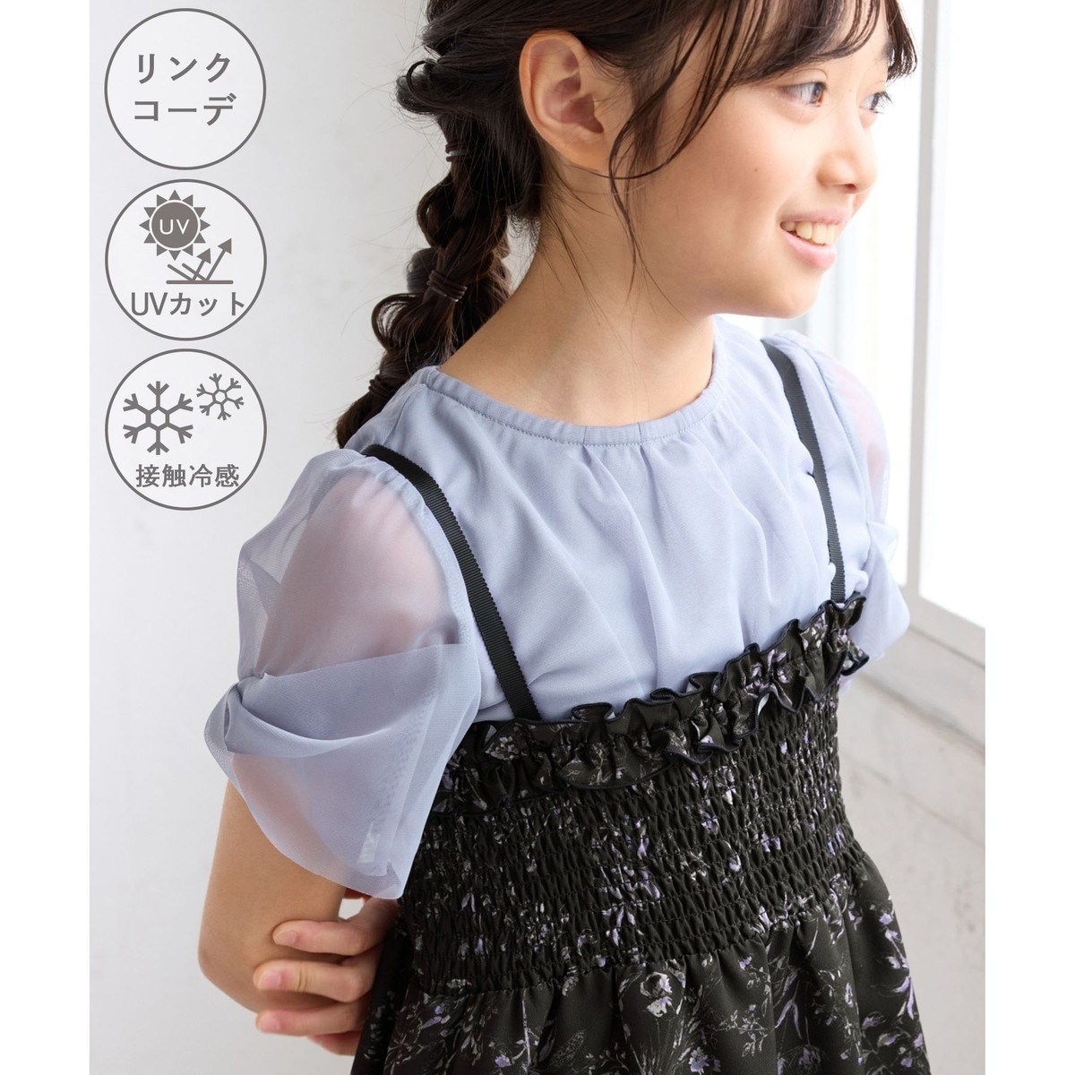 ・UVカット素材(遮蔽率90%以上)、ひんやりとした肌触りの接触冷感。