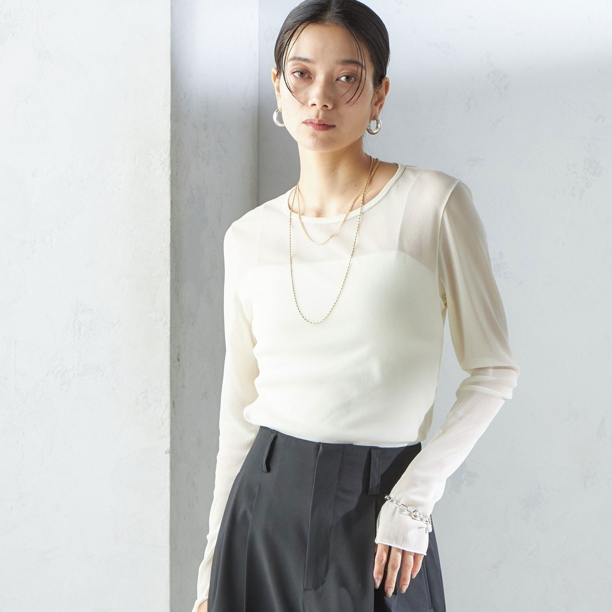 【未使用品】シップス 25SS 上質 ストレッチチュールロングスリーブTシャツ