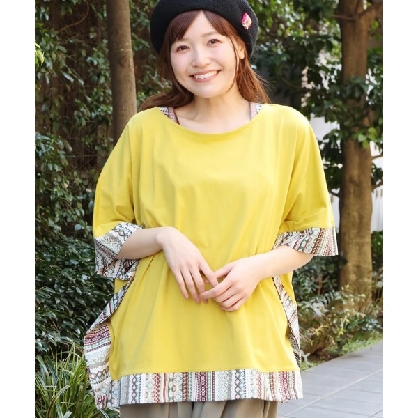 ペイズリー柄切替カットソー