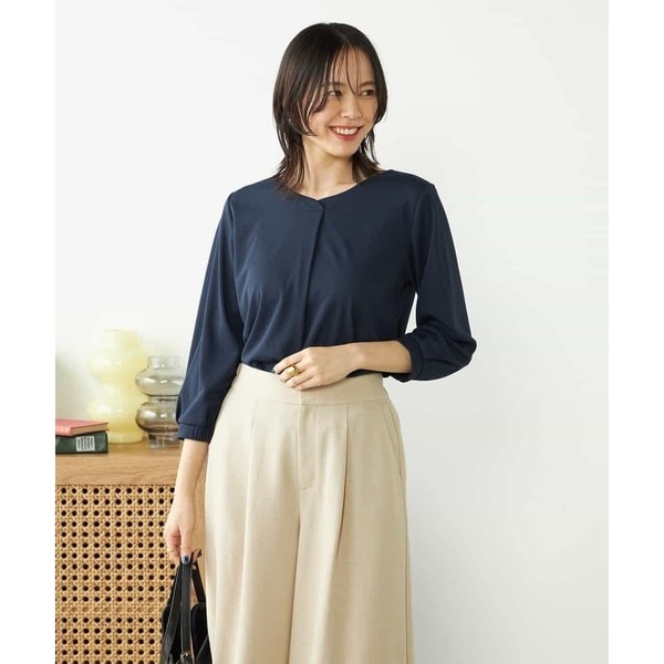 ・楽な着心地のカットソーながらブラウスライクデザインできちんと見え