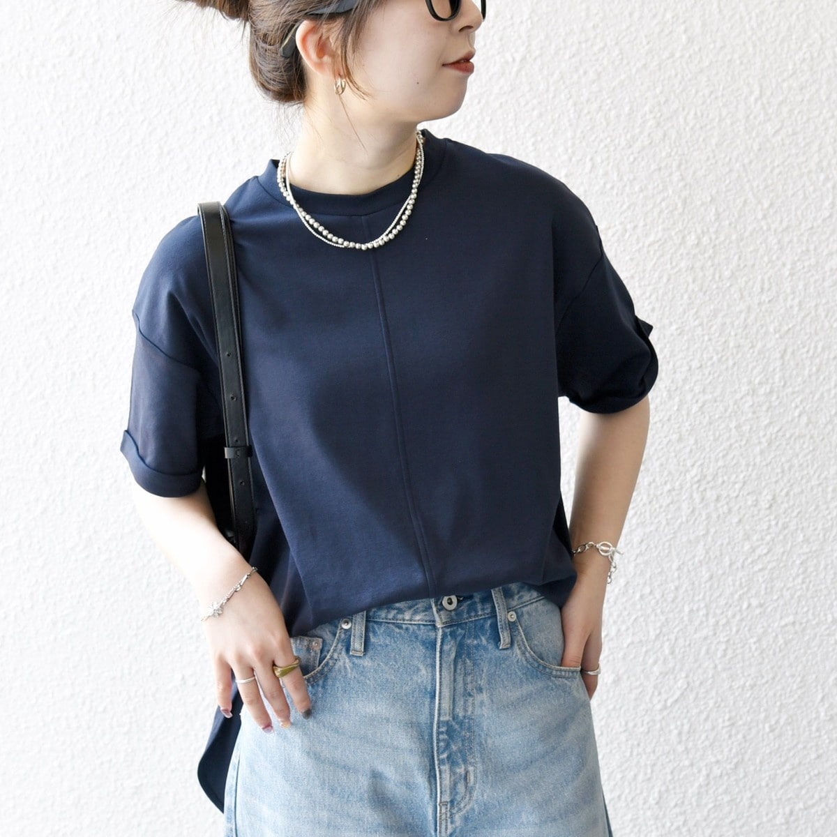 サイドやバックにスリットが入っているので、ワイドパンツやロングスカートと合わせる際はインしなくてもバランスが取りやすい一枚。