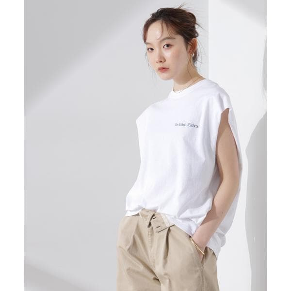 カジュアルなアイテムときれい目なボトムスなどとより合わせやすい別注のノースリーブTシャツ。合わせるボトムや羽織しだいで幅広いコーディネートを楽しめるから、ワードローブに追加しておくと重宝します。