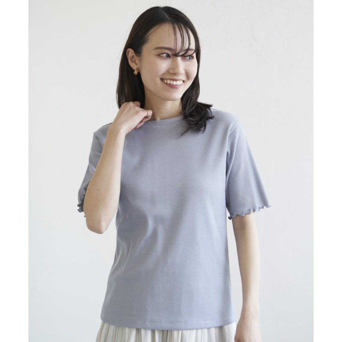 光りすぎないラメ混素材で、大人の女性にぴったりな上品さを漂わせるTシャツ。