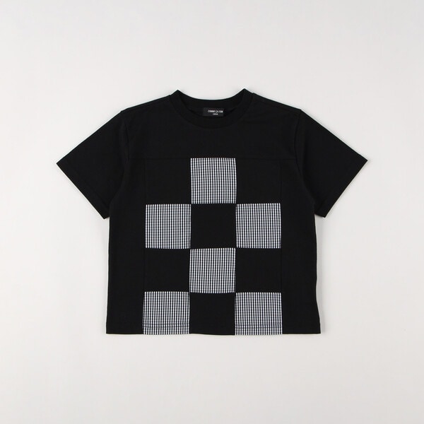ギンガムチェックと天竺を切り替えたパッチワーク半袖Tシャツです。