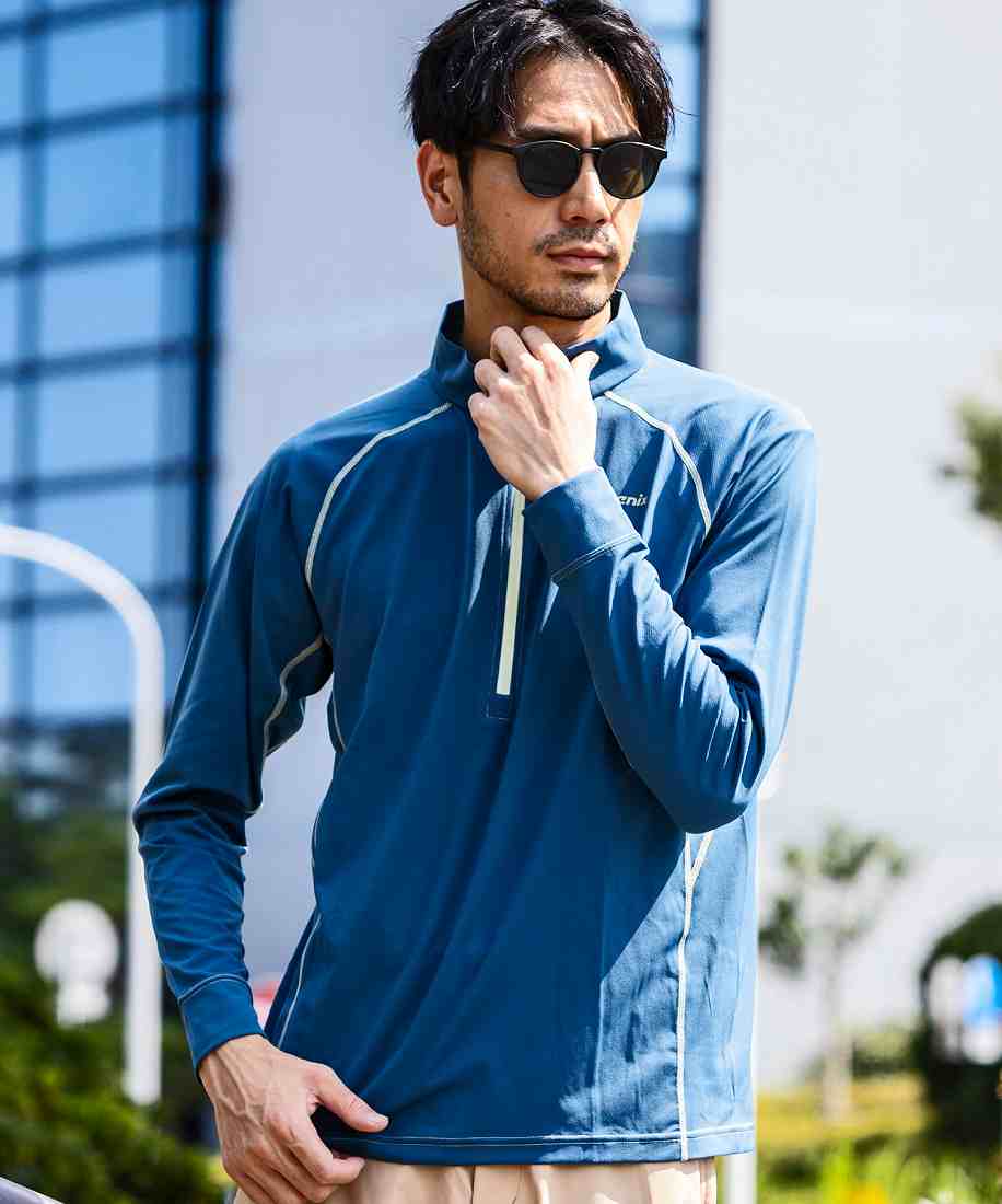 ハーフジップ仕様で脱ぎ着が簡単なうえ、体温調節もスムーズ。