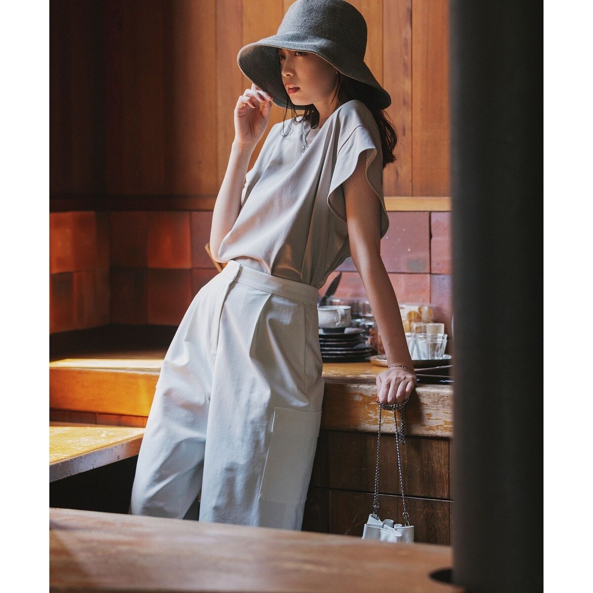 ■デザイン袖丈があるフレアスリーブで、二の腕もしっかりカバーしてくれる安心のデザイン。一見シンプルながらも着るだけでこなれたスタイリングが叶う、暑い夏に嬉しい一枚です。スカートともパンツとも相性がよく着回し力も抜群です。