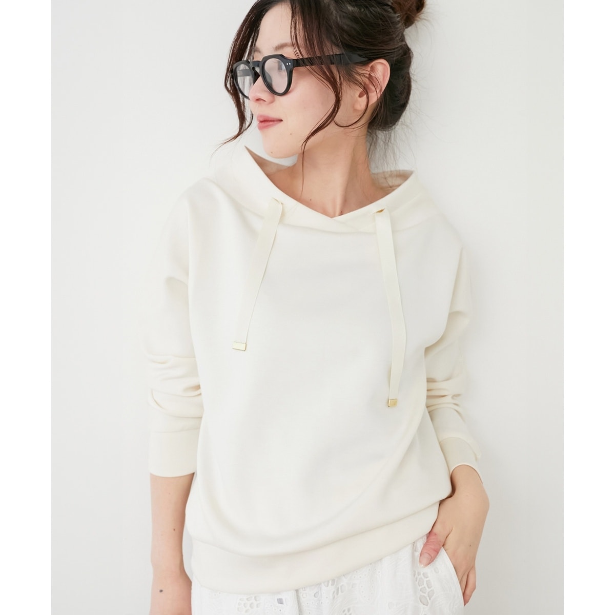 奥行の出る抜け感のあるネックデザインが顔回りをスッキリみせてくれ着やせ効果〇