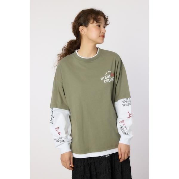 ■ポイントレイヤード風なトップスで1枚で簡単にこなれた雰囲気が完成する万能トップス。■ディティール袖に入るグラフィックは刺繍で表現され豪華な仕様になっています。ゆるっとしたオーバーサイズで男女問わず着用できるユニセックスアイテムになります。厚すぎない生地感でロングシーズン着用いただけます。■スタイリングデニムやワイドパンツなどストリートライクなコーディネートがおすすめ。■生地膨らみを持つ発砲プリントを施し仕上げています。プリントや刺繍は手で行う為、どうしてもそれぞれの位置がズレてしまいます。又、膨らみは輸送中などの荷物圧によってつぶされ、個体差が発生することがあります。技法の特性なので、ご了承ください。プリントの出方に個体差がありますが、二次加工特性によるものです。プリントを重ねるとくっついたり色移りの可能性がありますので注意してください。プリント商品の為、着用・洗濯によリ白化する場合があります。■透け感:なし■光沢感:なし■伸縮性:あり■裏 地:なし[注意事項]※画像の商品はサンプルです。実際の商品と仕様、加工が若干異なる場合があります。※画像の商品は光の照射や角度、お使いのモニター環境により、実物と色味が異なる場合がございます。※着用、お取り扱いの際は、アテンションタグをご確認ください。