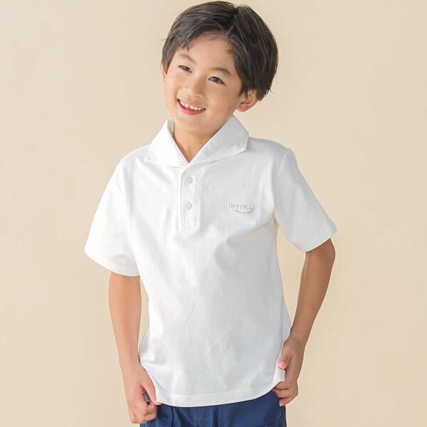 オープンカラー風の首元は喉元が詰まりすぎずシャツが苦しくて苦手というお子様にも◎