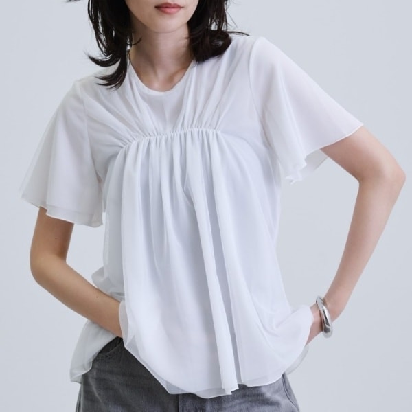 柔らかなメッシュ素材を重ねたレイヤードTシャツ。