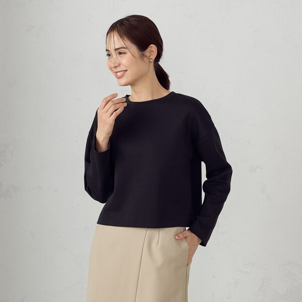着ただけで自然にスタイルアップを叶えるクロップド長袖Tシャツ。