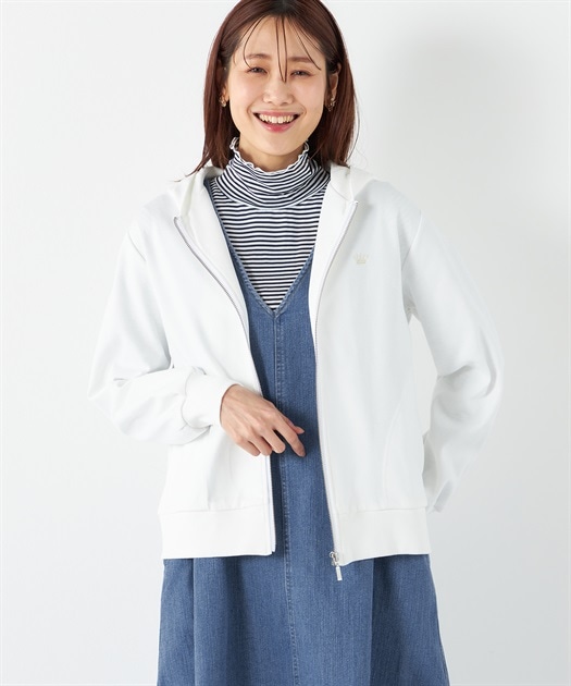 ベーシックなスウェット素材を用いた、ジップアップフーディです。