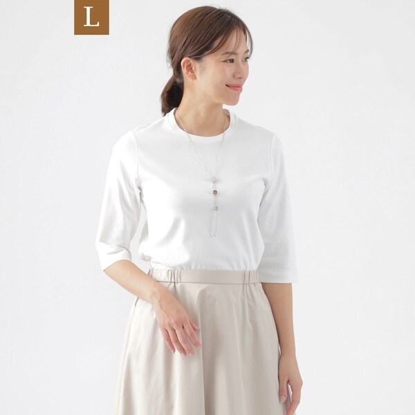 【L】【ウォッシャブル】コンパクトコットンポンチ7分袖ドレスTシャツ